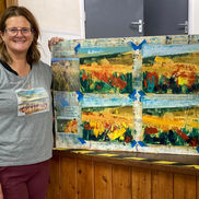 Emma Hoten delivered a comprehensive lesson in the use of cold wax with oil paints. She took us through the range of techniques and the different combinations of wax, solvent and gels to produce different textures and effects.